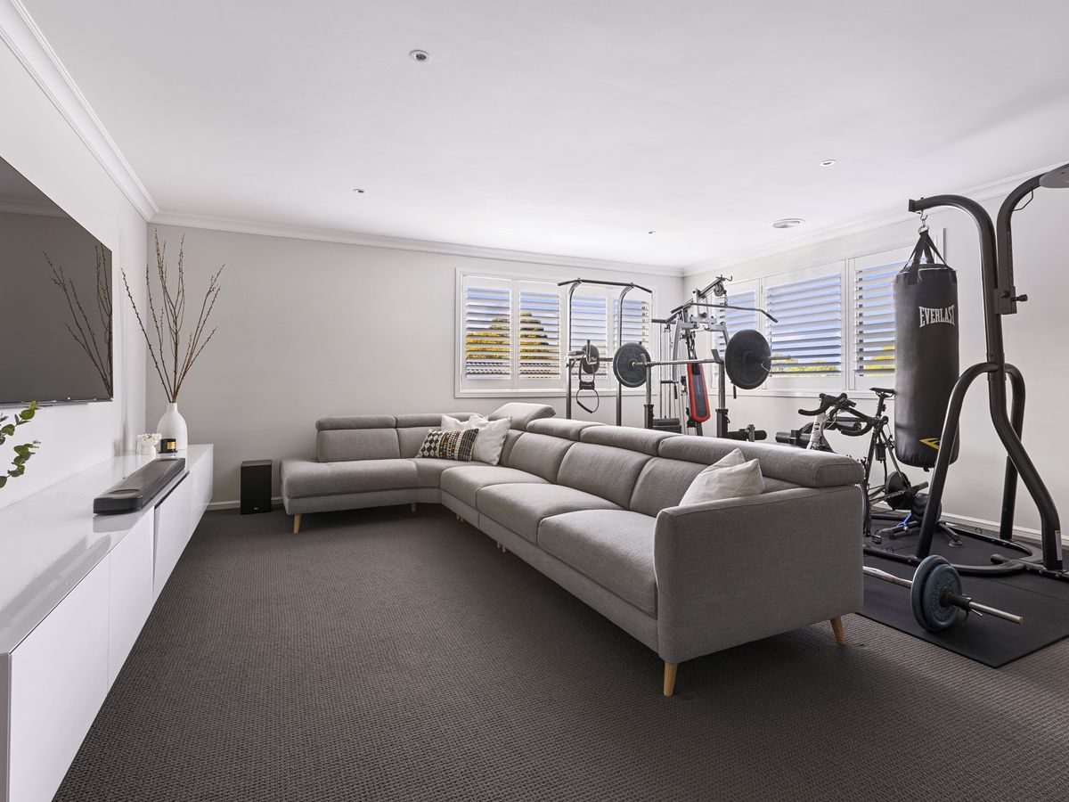 A shower was added to the downstairs guest bathroom so can convert the study to parents accommodation or make the theatre room the downstairs master. The ducted refrigerated cooling and gas heating are zoned for upstairs and downstairs.